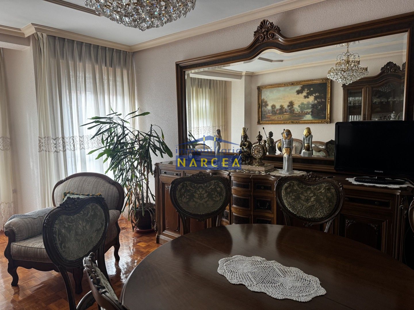 Se encuentra en una segunda planta con ascensor y se distribuye en una amplio y luminoso salón- comedor , una cocina amueblada con despensa totalmente independiente del resto de estancias y equipada con todos los electrodomésticos, cuatro dormitorios, uno dedicado a salita, un baño completo y un aseo.